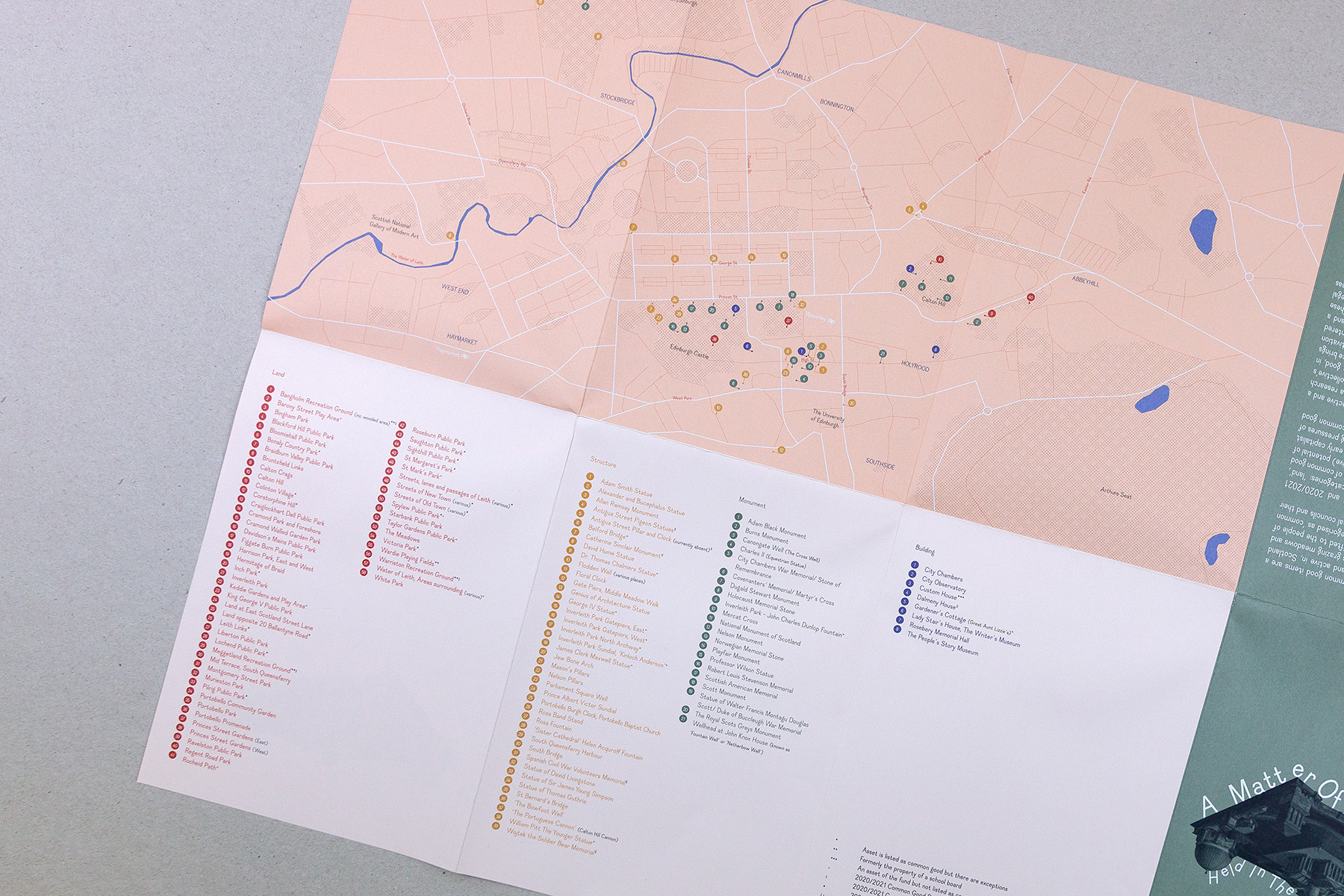 An identity and printed matter for a project mapping Edinburgh properties held in the common good with artist Annette Krauss